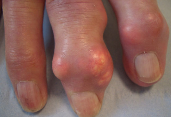 A less common presentation is insidious onset of chronic usage related joint pain, especially in joints already affected by osteoarthritis (e.g. finger interphalangeal joints with nodal osteoarthritis). Subcutaneous tophi can also be the presentation, especially in older people, see figure 3.