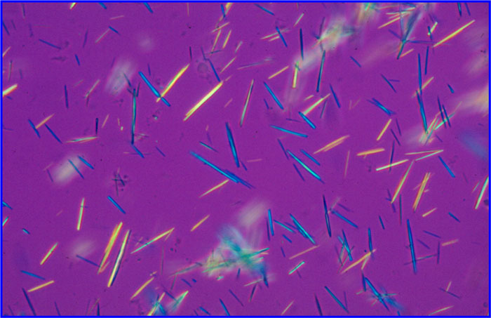 If the joint can be aspirated, presence of synovial fluid urate crystals on microscopy confirms the diagnosis with 100% confidence (see figure 3).23