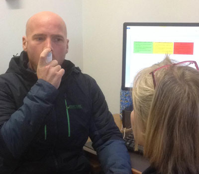 The report also suggested that patients prescribed > 12 short-acting reliever inhalers in a year should be called for urgent review.4 However, a well controlled asthma patient should have infrequent need of SABA – a blue inhaler should last almost a year if used no more than twice a week. We are aware of some primary care teams therefore issuing reliever medication quarterly rather than monthly, making a clinical review necessary for those patients requiring more than four blue inhalers a year and helping to reinforce the importance of maintenance therapy. Likewise patients on a MART regimen who regularly order extra inhalers should be called for a review. Other services routinely check pick-up rates for ICS before escalating treatment or referring to secondary care.