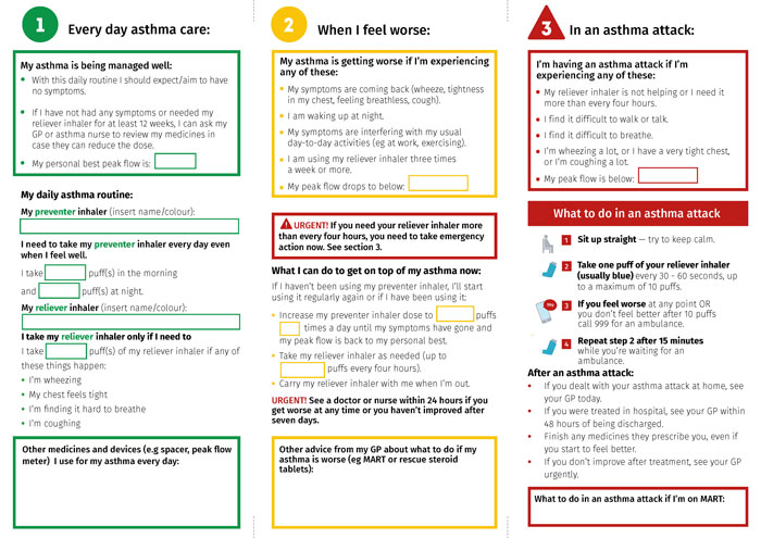 Self-management is an essential component in asthma management, as in all chronic conditions. Individuals should be able to recognise and act on symptoms and signs of deterioration.